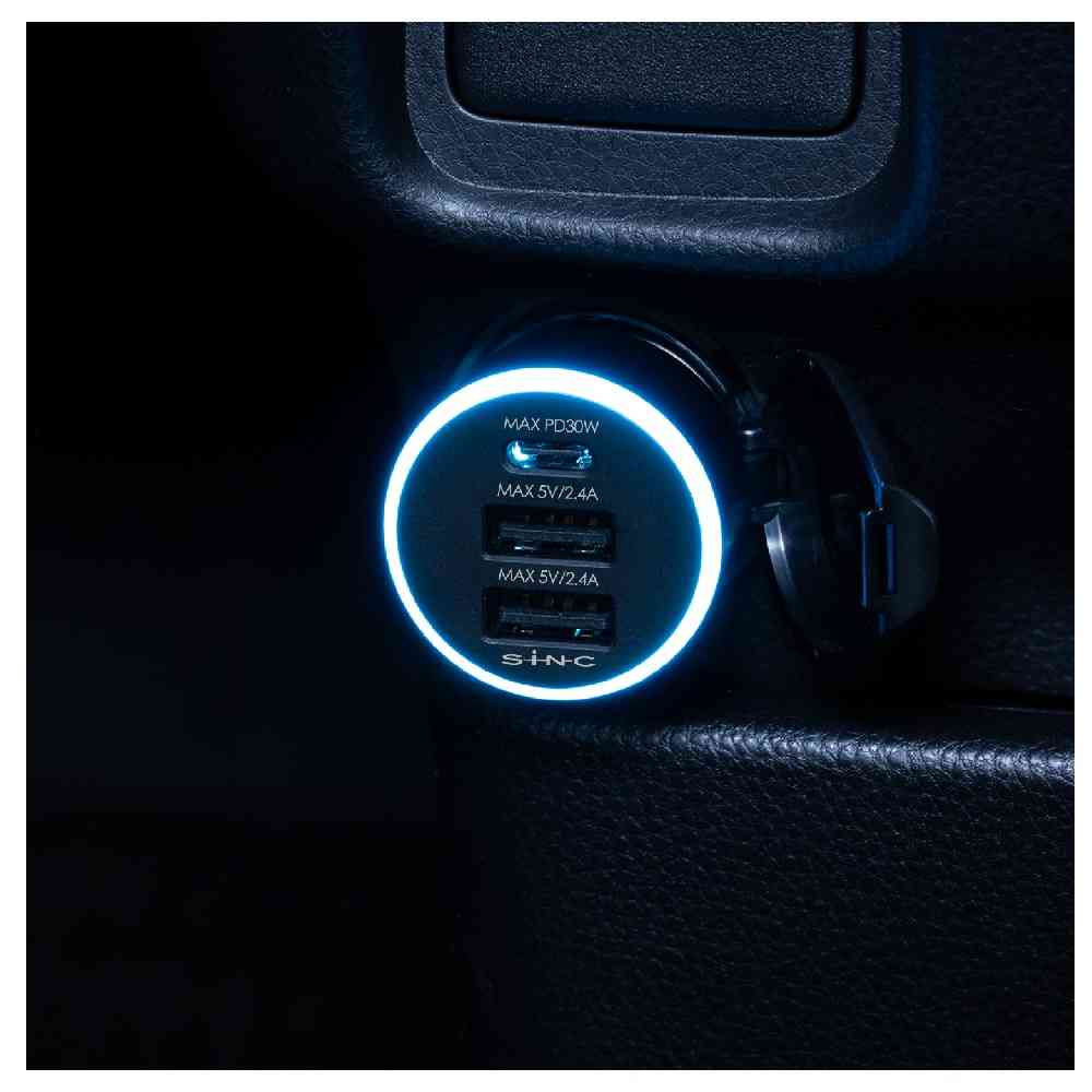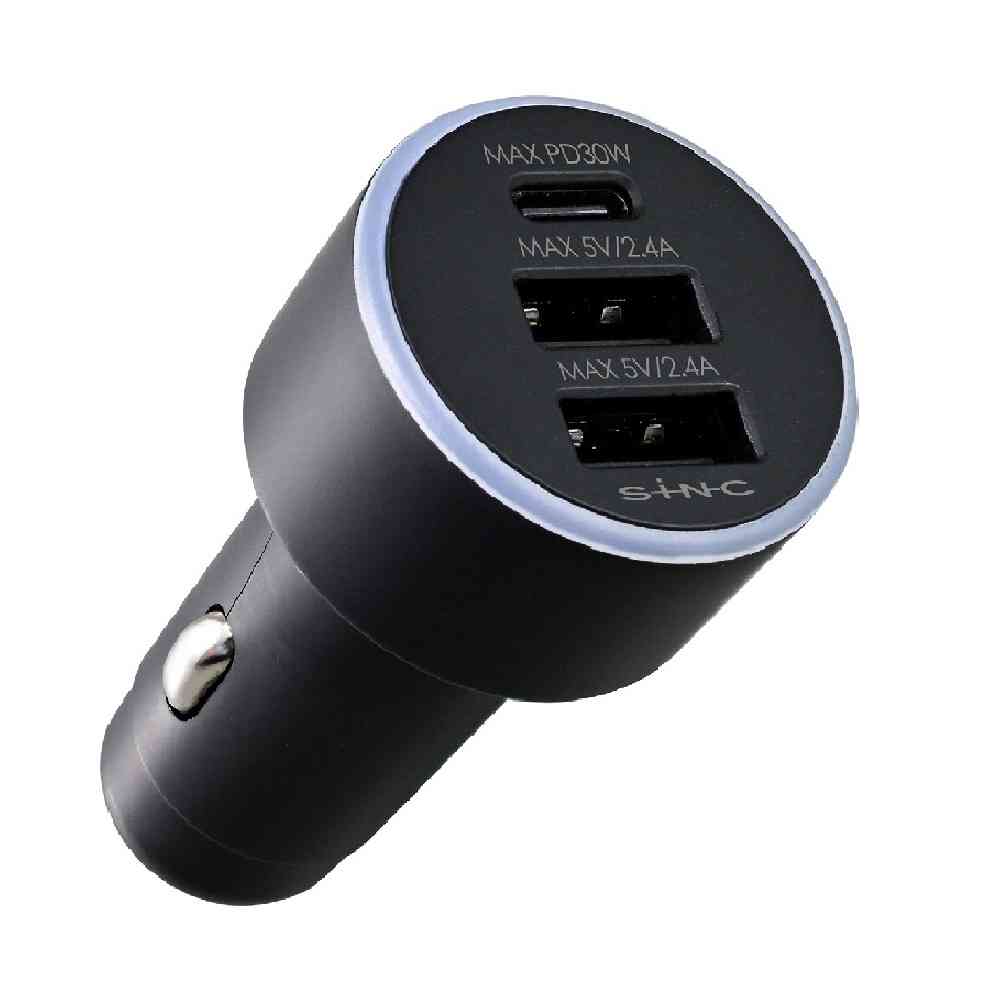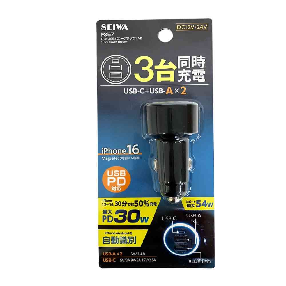 ●USB(USB-A、USB-C)ポートを3口搭載したソケットです。 ※USBポート:USB-C最大出力PD30W、USB-A合計24W ●タブレットとスマートフォンを3台同時充電が可能です。(最大54W) ●サージ対策チップと過電圧/過電流保護回路で、製品と接続デバイスを保護します。 ●スマホやタブレット等、接続機器を自動に識別し、それぞれの機種に最適な電流値で充電することができます。 ●DC12/24V車対応。トラックなどの大型車にもご使用可能です。ブルーLED付き。