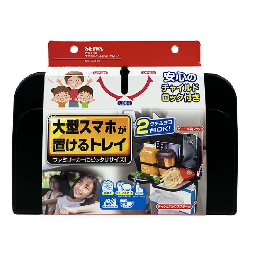 seiwa、WA145、スマホ、ポケット、リアトレイ、ティシュステー、スマホポケット、ブラック、収納