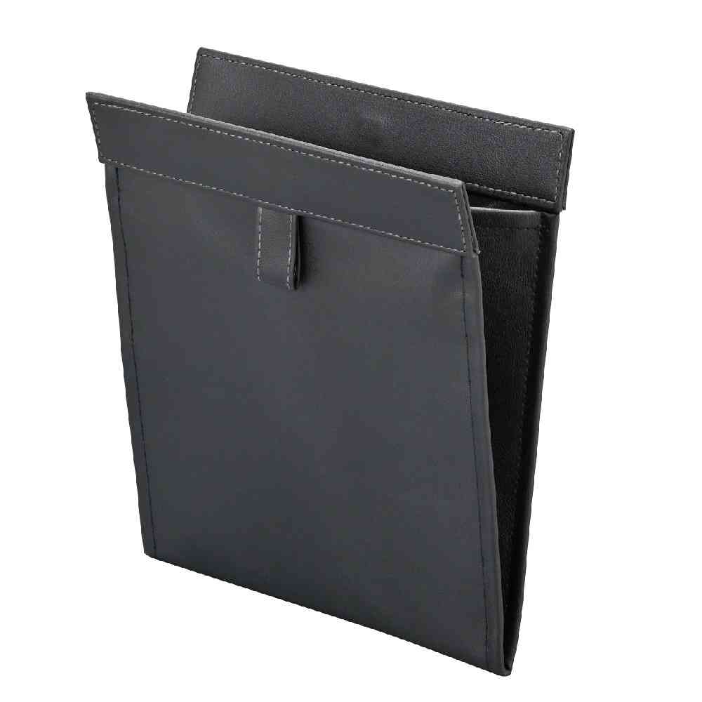 ●コンパクトでスリムな折り畳みタイプのゴミ箱です。 ●上質で落ち着きのある黒色本革調生地採用。 ●消臭効果のある活性炭シートを生地内部の芯材に使用しています ●ゴミ箱の開口部はマグネット式で簡単に開閉ができて便利です。 ●本体内側に便利なゴミ袋固定用バンド付きです。 ●ゴミ箱の着脱が可能なフック取り付けです。