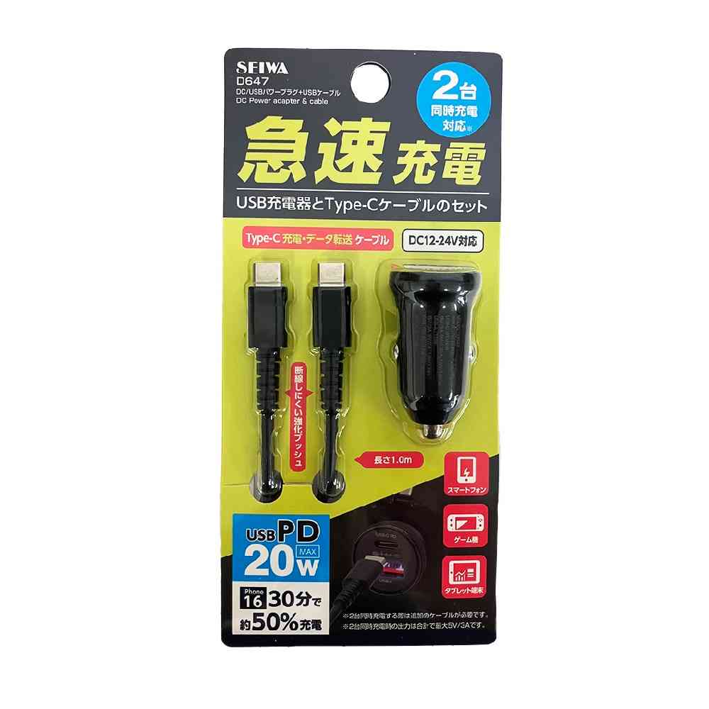 ●デバイスを2台同時充電可能なType-A+Type-Cポートを備えたDC充電器と急速充電対応のType-C to Cケーブルのセットです。 ●Type-C単ポートで最大PD20W出力、Type-A単ポートで最大18W出力できます。 ●Type-Cポート+Type-Aポート同時出力可能、2ポート同時で最大出力5V/3Aです。 ●ケーブルはデータ通信にも対応します。 ●通電確認用LED付き。