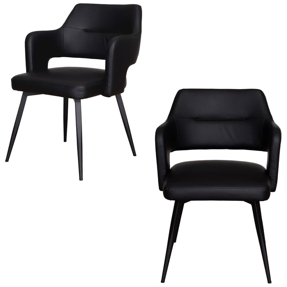 包み込むようなフォルムのPVC張り込み製回転チェア。2脚セットです。 PVC張地でお手入れしやすく、ブラック色とホワイト色から選択できます。 さまざまなテイストのテーブル、お部屋にもあう、スタイリッシュなチェアです。