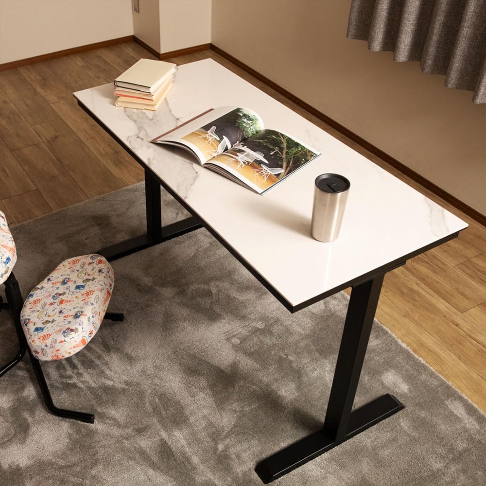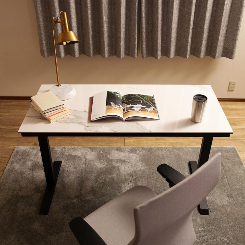 セラミック天板使用のおしゃれなデスク。セラミック+強化ガラスの高級感あふれるテーブルです。セラミックは、熱・キズ・汚れに強いのが特徴です。焼き物特有の素材感があり、表自然な色合い、質感を楽しむことできるパールホワイト色を採用。お部屋に映える存在感があり、機能性を両立させた魅力的なテーブルです。