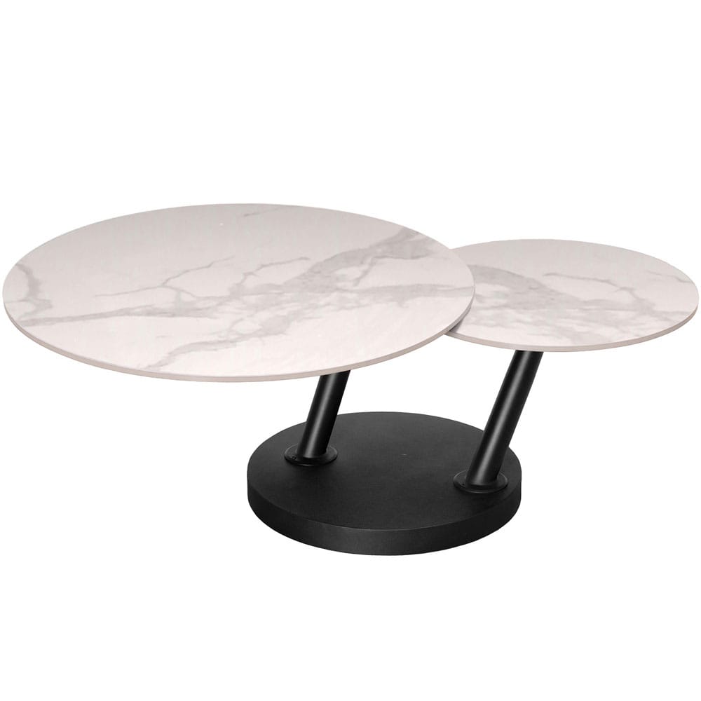天板2枚が回転軸により展開するムービングテーブル。用途に応じて小型のテーブルとしても使用可能。