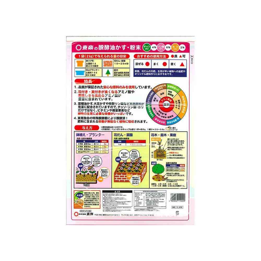 お客様から愛され続ける「ロングセラー商品」 【特徴】 菜園・花壇の元肥、成育が早い植物への追肥、オリジナル肥料作りにおすすめです。 10種類以上の天然原料に東商独自の醗酵菌をブレンドし、醗酵専用の部屋でじっくり時間をかけて醗酵しました。 醗酵処理により各種栄養が増加し、肥料としての効果が高くなります。