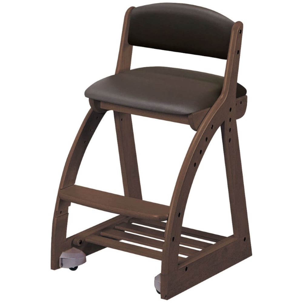 成長に合わせて永く使える木製チェア。 高さと同時に座面奥行が4段階、足置きは2段階に調節できます。