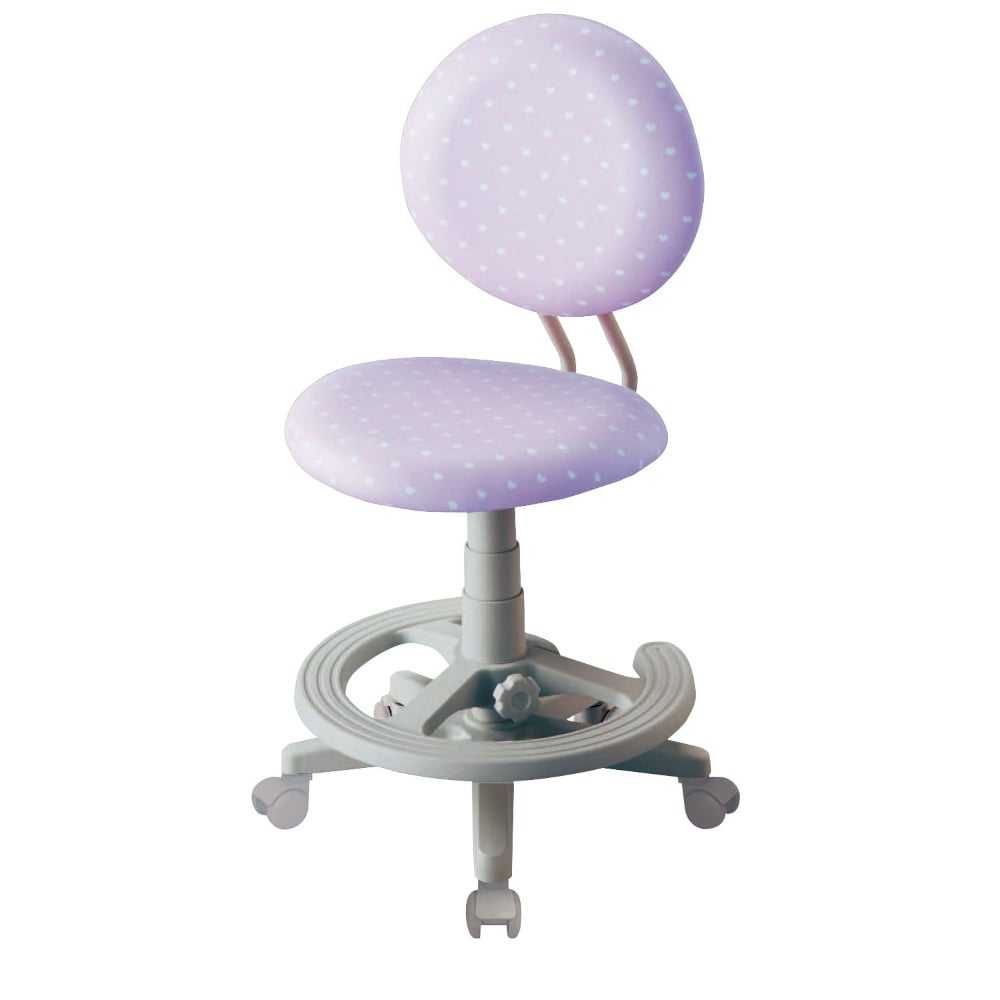 背もたれカバーと昇降レバーはハート型。張地にもハート柄をあしらったかわいらしい回転チェアです。