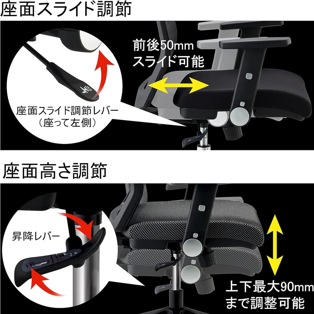長時間デスクに向かう方への姿勢や身体を考えた設計。腰や背中に負担がかかりにくい構造と機能のJG6シリーズ