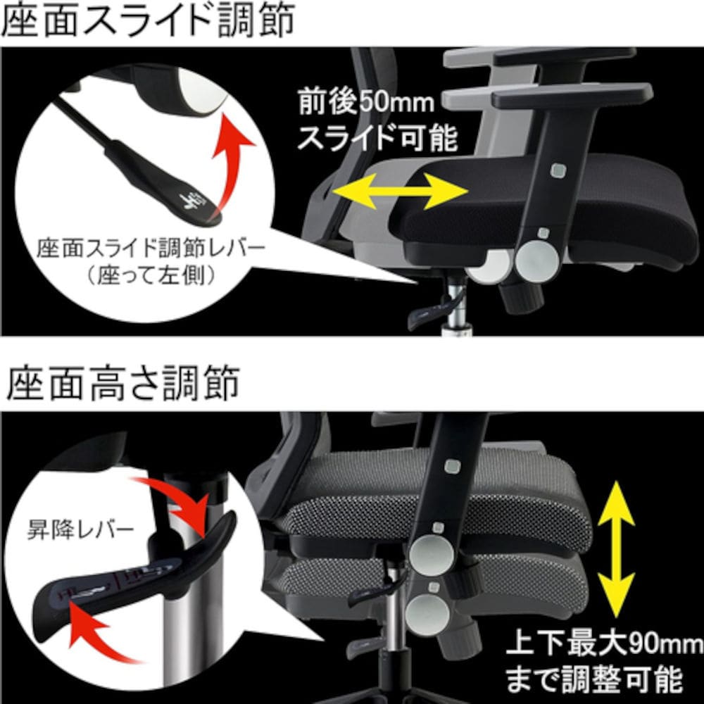 長時間デスクに向かう方への姿勢や身体を考えた設計。腰や背中に負担がかかりにくい構造と機能のJG6シリーズ