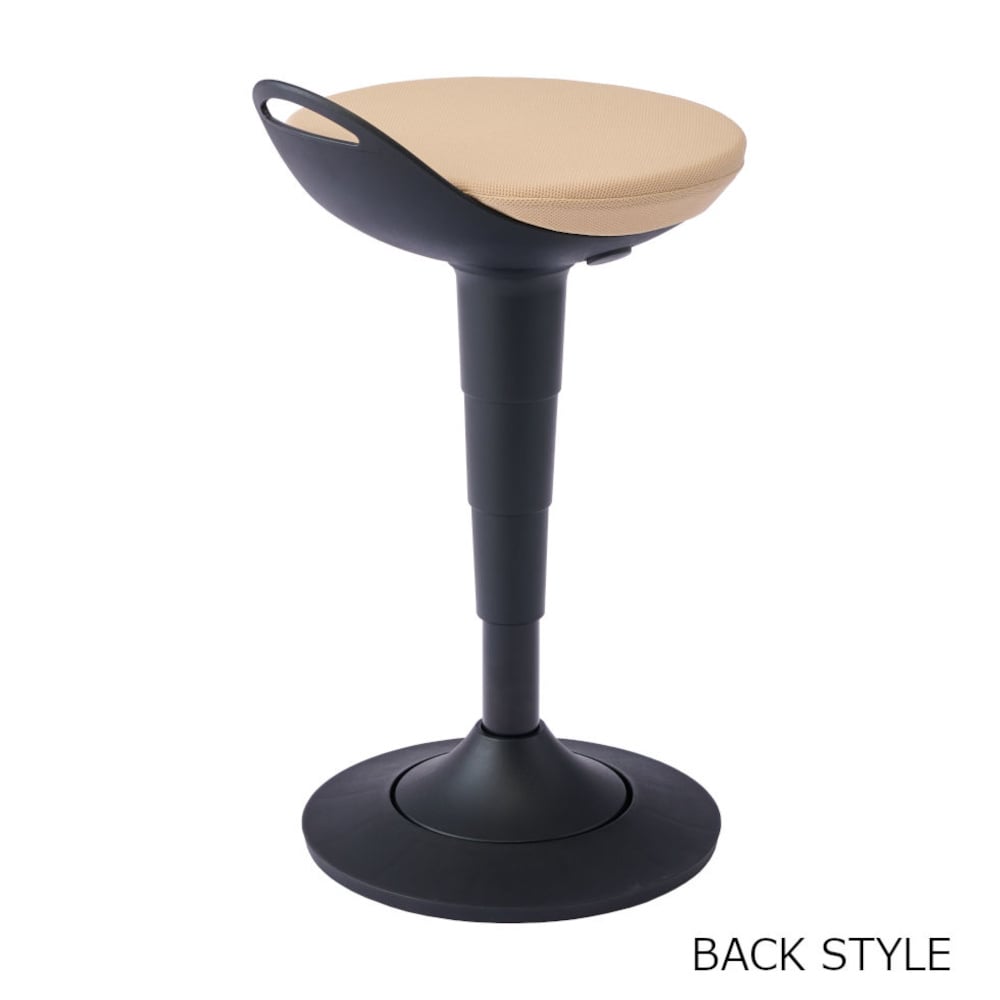 昇降デスクに最適な座面高を調節できるスツール。座面がスイングするので中腰の姿勢にも対応できます。