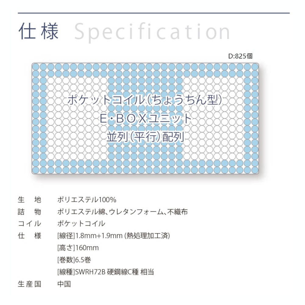 圧縮マットレスのやや硬めのスタンダードモデル。E-BOX構造により腰部を支え,快適な寝心地を実現。
