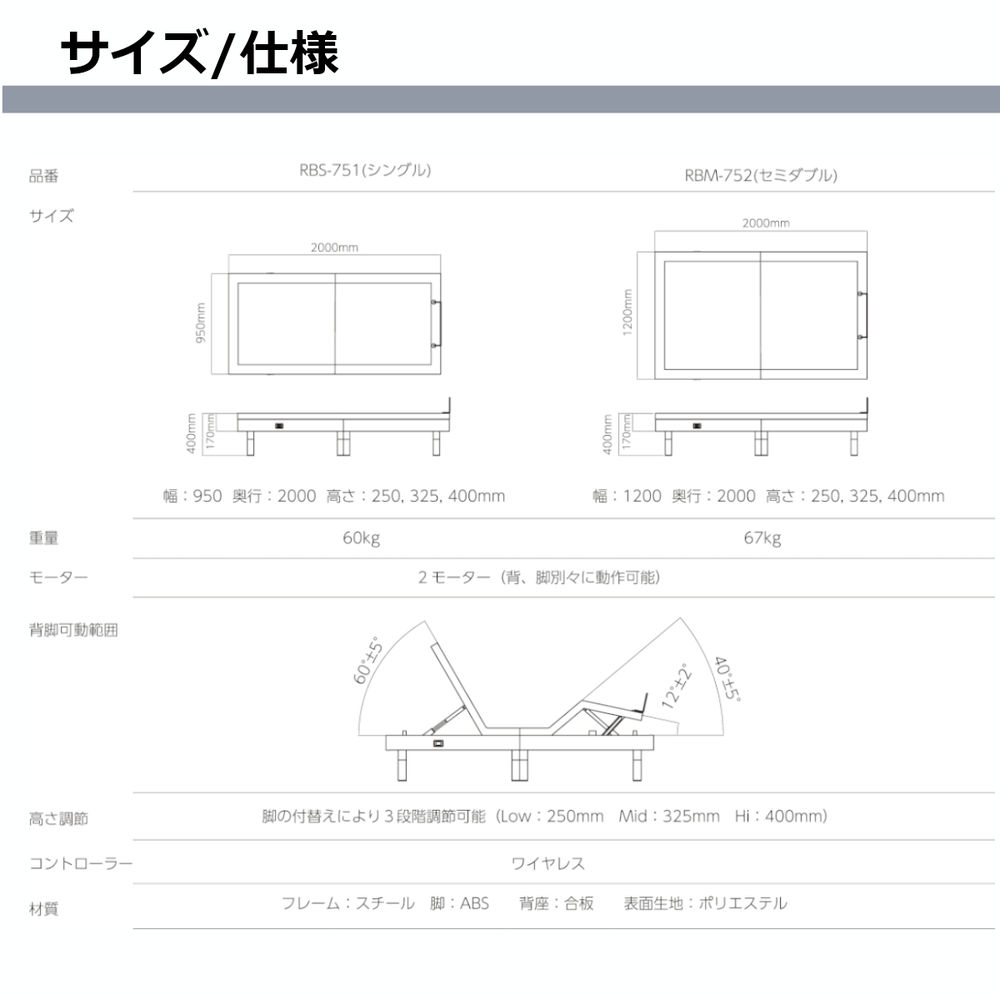 幅950×奥行2,000×高さ(マットレス含む)400,475,550mm