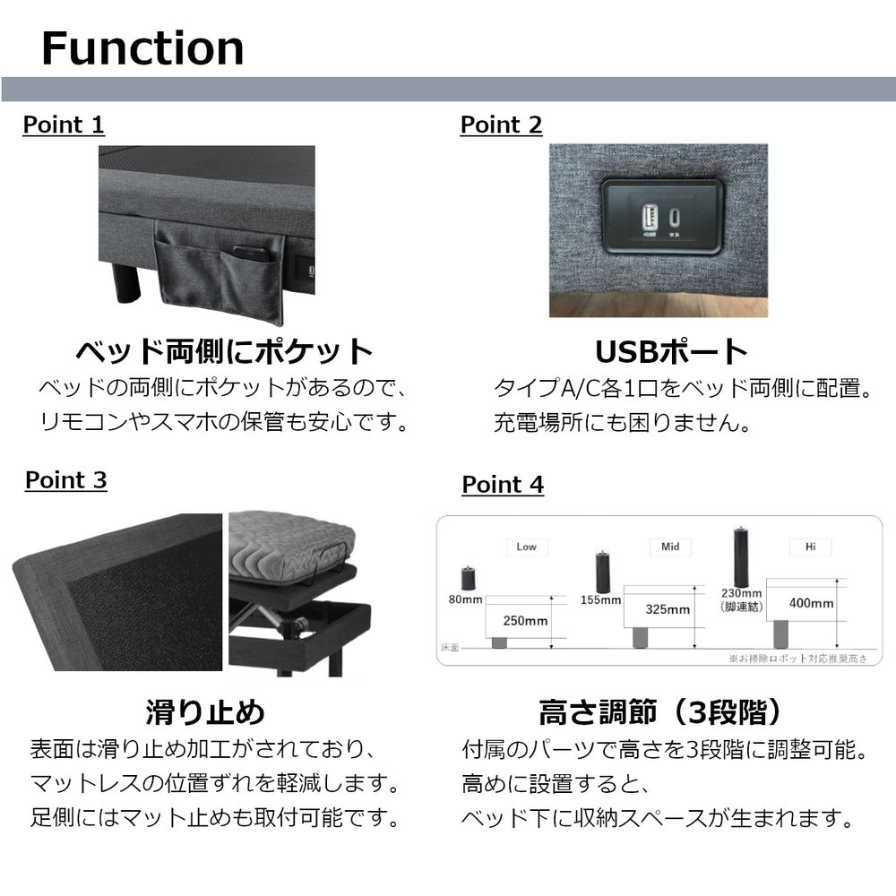 電動ベッド おすすめ 電動リクライニングベッド リクライニングベッド セミダブルベッド Ellen エレン 2モーター電動ベッド 睡眠の質向上 おうち時間の充実