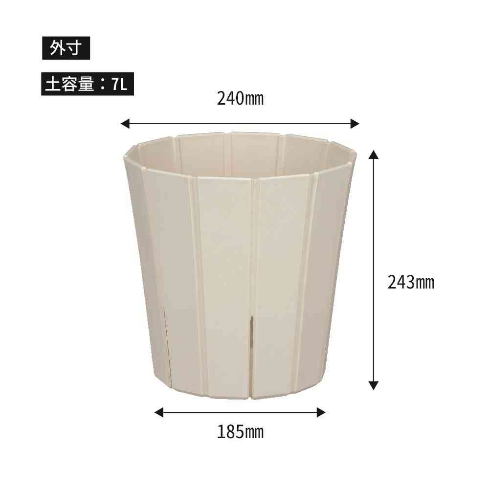 陶器鉢のような手触りとシンプルで安定感のある寸胴型のフォルムで、観葉植物などをすっきりと飾れます