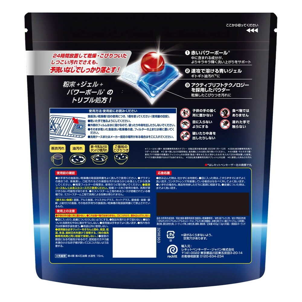 ●24時間放置したこびりつき汚れを予洗いなしでしっかり落とします。 ●粉末+ジェル+パワーボールのトリプル処方。 ●赤いパワーボールに含まれる成分が、よりキラキラ輝く洗いあがりをサポート。 ●速効で溶ける青いジェルがギトギト油汚れに。 ●アクティブリフトテクノロジーを採用したパウダーが、乾燥したこびりつき汚れに。