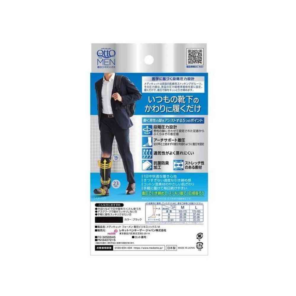 ●メディキュットフォーメン着圧ビジネスソックス ●5つのアシスト(機能)男性の脚に合わせて設定された足首からふくらはぎの着圧値 ●抗菌防臭加工 ●ビジネスシーンにぴったり仕事服にも合わせやすい ●オンでもオフでも履きやすい ●働く男性の脚をアシストする5つのポイント ●足首からふくらはぎの段階着圧/アーチサポート着圧/抗菌防臭加工/通気性/ストレッチ性
