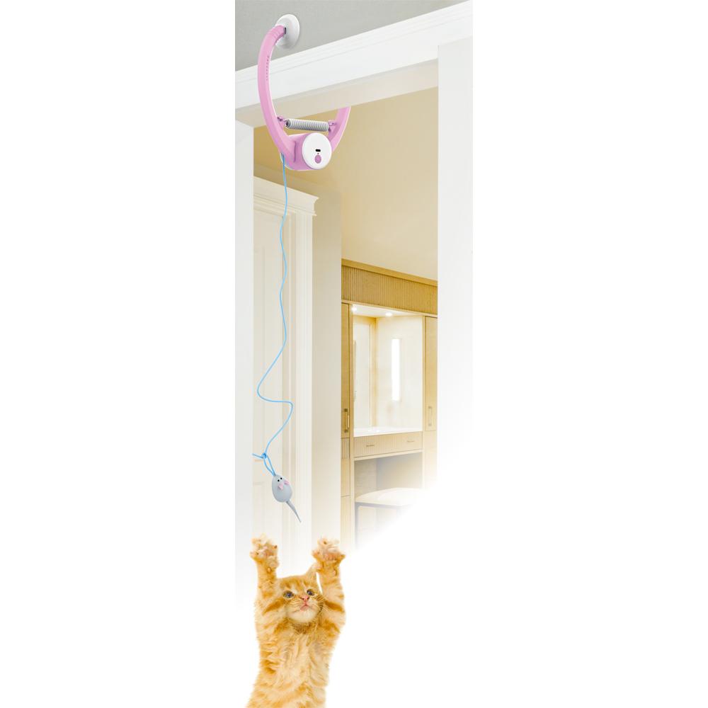 ・室内上部に挟むだけ!(適合幅約2~14cm)電動リールで上下に動く!不規則な動きで大興奮!充電タイプで何度でも遊べる! ・セット内容:本体、おもちゃ×2個(グレー/ブルー)、ひも×3本(2m/1.5m/1m)、USBケーブル※ USBアダプター(5V/1A~2.1A)は付属しておりません。別途ご用意ください。
