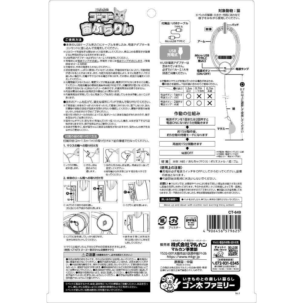 ・本品は猫用のおもちゃです。それ以外の目的には使用しないでください。 ・本商品は強い衝撃を加えないでください。 ・電子部品を内蔵しているため、水気を避けてください。 ・本品は屋内専用です。屋外では絶対に使用しないでください。正常な操作が出来なかったり、破損する恐れがあります。 ・暖房器具の近くなど火気のある温度の高いところには置かないでください。 ・遊ぶときはケガをしない環境であることを事前に確認してください。 ・事故や危険がないよう、安全に配慮してください。 ・使用や保管の際には、お子様やペットがイタズラしないようにしてください。 ・お子様が使用する際は大人が目を離さないようにご注意ください。