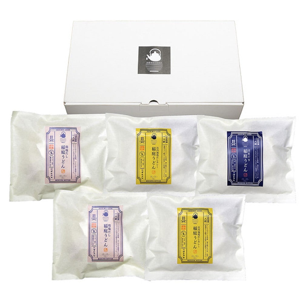 ●比内地鶏だしカレーうどん(麺55g、つゆ50ml、あげ、ねぎ)×2、鶏塩だしうどん(麺55g、つゆ40g、赤唐辛子、ねぎ)×2、はまぐりうどん(麺55g、つゆ25ml、殻付はまぐり2粒、わかめ、七味唐辛子)×1