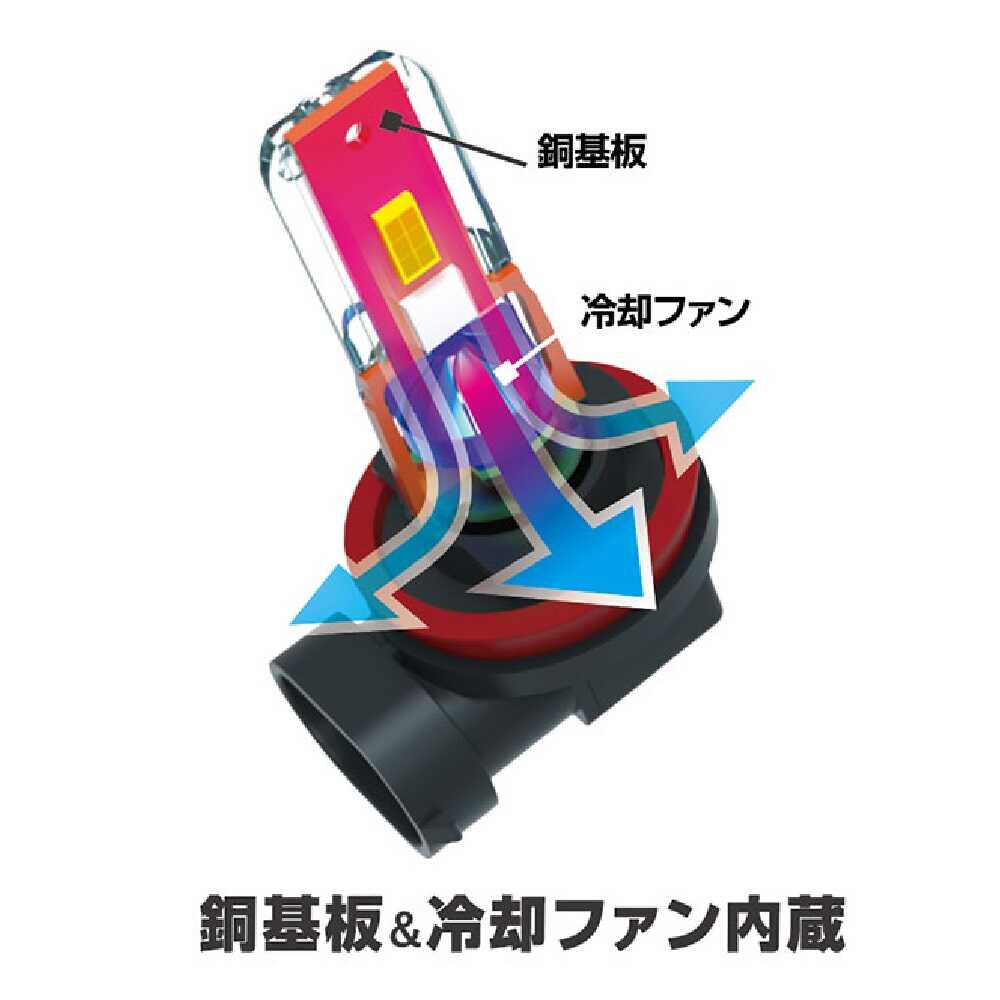 ●純正球と交換するだけで簡単LED化。 ●高輝度LED使用。 ●銅基板内蔵、ファン付きで放熱性能がアップ。 ●配線無しの簡単取り付け。 ●安心の車検対応。 ●ノイズ対策済み。 ●DC12V車専用。 ●色温度: 3000K