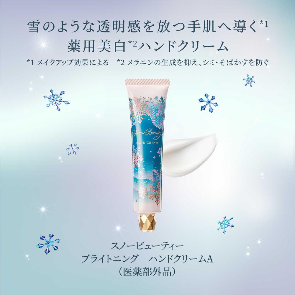 つけた瞬間、しっとりうるおって明るく美しい手肌を演出、薬用美白ハンドクリーム。 光拡散によるメイクアップ効果(ハンドビューティー効果)で、つけた瞬間からくすみをカバーし明るい手肌に仕上げ、保湿成分を含んだベールでコートするから、指先までうるおいが続く。 美白有効成分「4MSK」(4-メトキシサリチル酸カリウム塩)配合で、メラニンの生成を抑え、シミ・そばかすを防ぐ。 10thAnniversary限定デザイン。 使用方法 ●適量をとり、手の甲から指先に向かってなじませます。