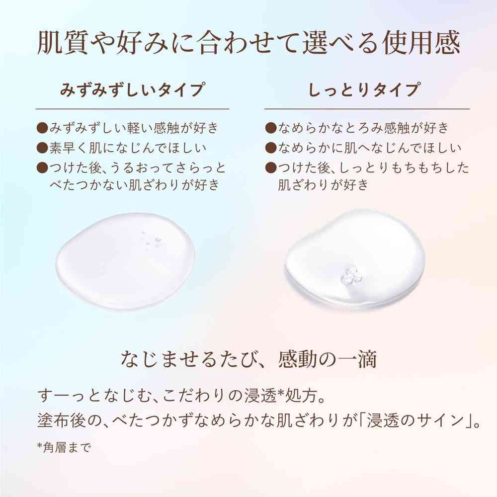 肌のハリと。新たな次元へ。薬用 高機能エイジングケア*化粧水 ゆるぎないハリのための独自成分「コラジェネシス(R)**」配合。 さらに、うるおって、小ジワ***、大人毛穴まで目立たない。 高機能エイジングケア*で、「つや玉」輝く肌へ。 *年齢に応じたうるおいケア **シャクヤクエキス、バラエキス、ヒドロキシプロリン、ミシマサイコ根エキス、グリセリン(ハリ保湿) ***うるおいによって、乾燥による小ジワを目立たなくする