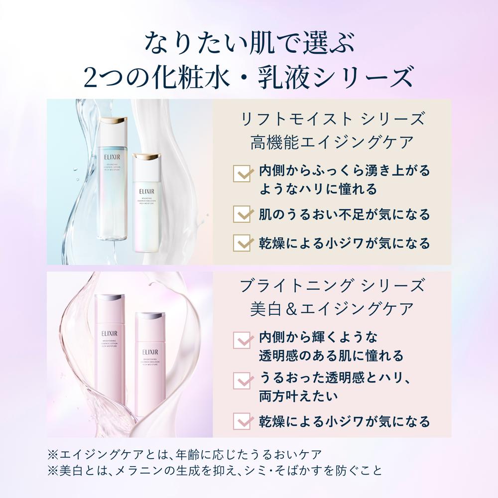 美白、エイジングケア、ハリ、資生堂エリクシール、エリクシールホワイト、ブライトニングローション、化粧水、美白、薬用美白、シミ予防、そばかす予防、透明感、ハリ保湿、つや肌、医薬部外品、スキンケア、しっとり、資生堂スキンケア、エリクシール美白、詰め替え、詰替え、詰替