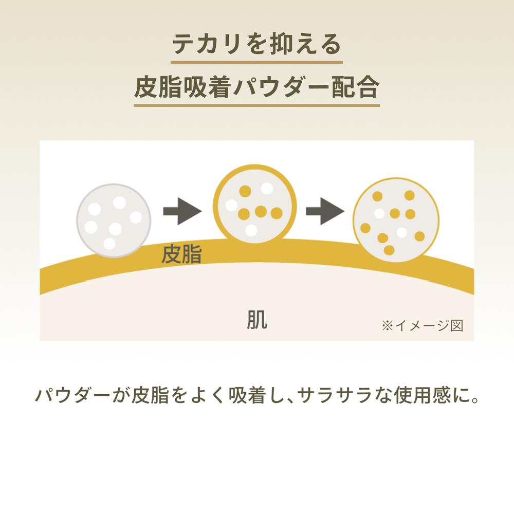 化粧直しとUV対策がこれ1本。 べたつかず、手を汚さず、メイクの上から手軽にUVカット効果をプラス。 テカリを抑えてふんわり自然な仕上がりが続く。 肌になじみやすいトランスルーセントベージュカラー。 持ち運びしやすいブラシ一体型。 オイルフリー。 ウォータープルーフ。 つめかえ用レフィル。