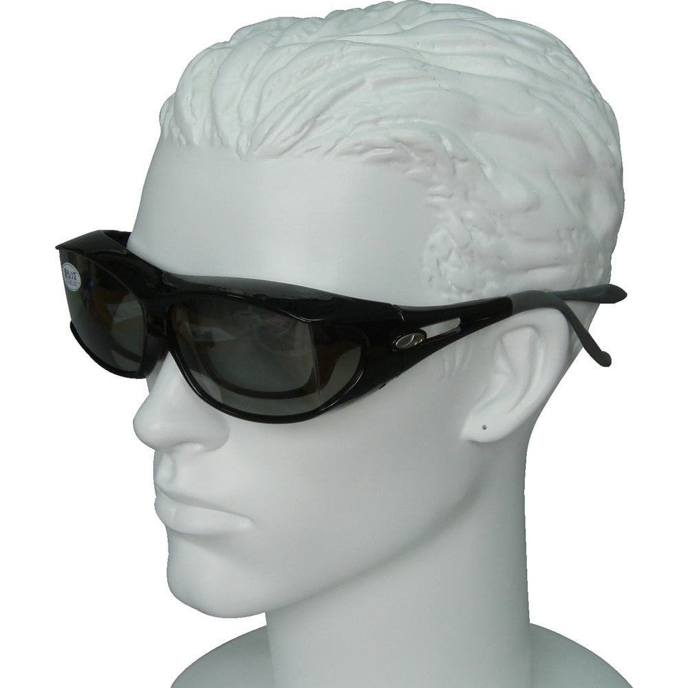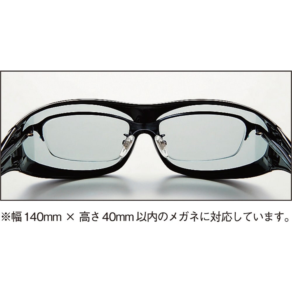 ●180度以上の視界が確保できるパノラミックビューレンズを搭載した、大型メガネの上からでも掛けられるオーバーグラスです。●レンズ色:スモーク●テンプル色:ブラック●フレーム色:ブラック●幅(mm):163●高さ(mm):50●レンズ厚(mm):1.0●可視光線透過率(%):34●紫外線透過率(%):0.1●UVカット率(%):99.9●UVカット:○●ツル調整:○●メガネ併用可否:○●全幅×高さ(mm):163×50●レンズ厚:1.0mm●UV400プロテクション●偏光トリアセテートレンズ(TAC)●パノラミックビューレンズ●硬質ナイロンフレーム(TR90)●フレキシブルラバーテンプル 質量34g