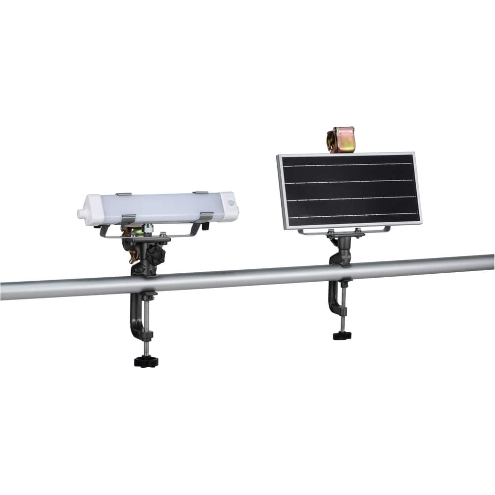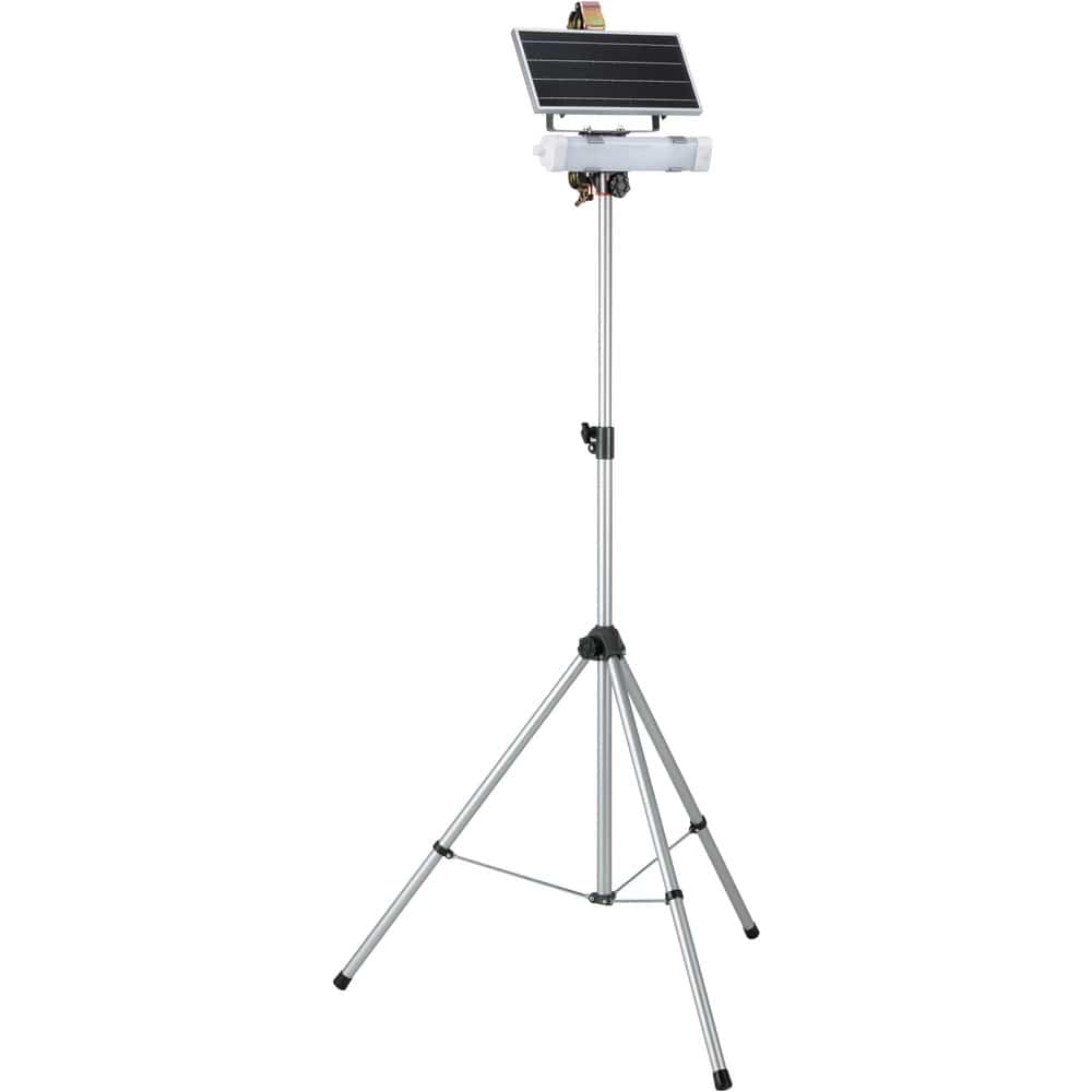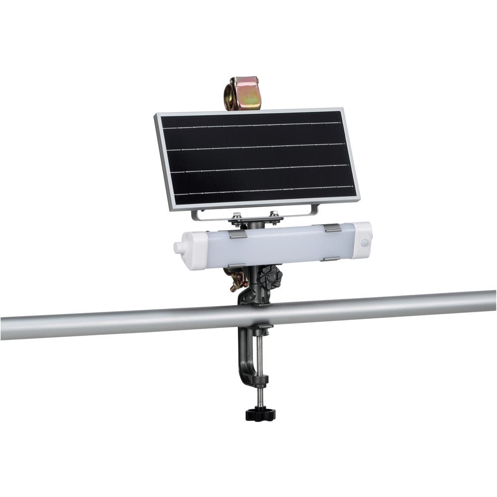 ●電源が取れない場所でもソーラーパネルで充電可能です。●灯体は工具不要で取り外せ、移動用照明としても使用可能です。●人感センサーモードで動作検知時のみ点灯し省エネです。●3WAYの取付方法(バイス・単管クランプ・三脚)ができます。●バイスと単管クランプ(φ48.6)は製品に標準付属です。●リモコン・延長スイッチ付属で離れた場所からでも操作可能です。●灯体とソーラーパネルはドッキング可能な構造です。●スッキリ収納できるケーブル収納アーム付きです。●USBポート出力(5V/最大1A)ができるのでスマートフォンなどの充電が可能です。●スッキリ収納できるケーブル収納アーム付です。●幅(mm):350●高さ(mm):170●使用電球(W):6●消費電流(W):6●点灯保持時間:約8時間(100%)●明るさ(lm):700●使用電池:定格3.7V リチウムイオン電池12000mAh●光源:白色LED(6W)●点灯時間(目安):100%:約8時間、50%:約16時間●充電時間(目安):約12時間●屋外用 質量4.5kg
