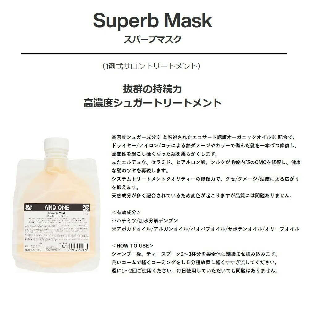 &ONEスパーブマスクはサロンシステムトリートメントを1STEPに集約した持続タイプのトリートメントです。 高濃度シュガー成分と厳選されたエコサート認定オーガニックオイル配合で、ドライヤー・アイロン・コテによる熱ダメージやカラーで傷んだ髪を一本づつ修復し、熱変性を起こし硬くなった髪を柔らかくします。 またエルデュウ、セラミド、ヒアルロン酸、シルクが毛髪内部のCMCを修復し、健康な髪のツヤを再現します。 システムトリートメントクオリティーの修復力で、クセやダメージによる広がりや湿度による広がりを抑えます。 ロマンチック系フルーティーフローラルの香調をお楽しみください。