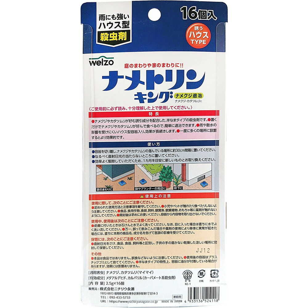 ・置いて誘引、簡単退治 ・雨にも強いハウス型 【特徴】 ・誘引成分「ビール酵母」を配合したハウスタイプの殺虫剤です ・置くだけでナメクジやカタツムリが好んで食べるので簡単に退治出来ます ・雨や散水の影響受けにくくこうかが長続きします ・一度に多くの場所に設置するとより効果的です