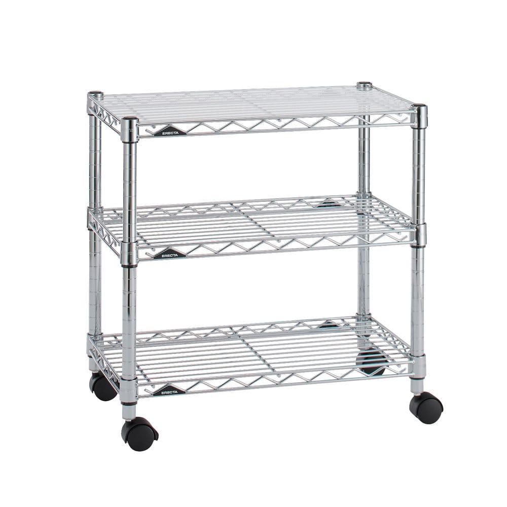 プリンタやスキャナ、ファイル収納にも使える万能ラック。シンプルなデザインが特徴です。机横の書類整理だけでなくプリンター収納、机の作業時の補助にもなります。オールインワンのセット商品。【仕様】総耐荷重:4個使用時/140kg●機能:キャスターストッパー機能(2個)●セット内容/ワイヤーシェルフ:3枚、ポスト:650mm(4本)、キャスターストッパー付き:2個、キャスター:2個、アクリル板(クリア2mm厚):1枚●キャスターを使用した場合の最大外寸/間口・奥行寸法に86mmを足した寸法になります。