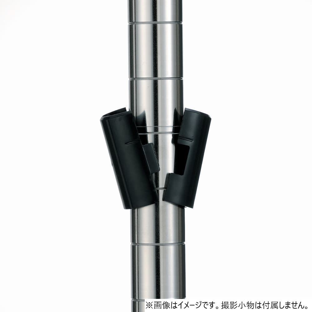 シェルフを固定する専用パーツ。ベーシックシリーズのテーパード固定方式に用いる専用パーツ。素材の一部に再生材を使用した環境に配慮した製品です。クロームシェルフ及びクローム色の3方クロスバー他パーツ向けです。オーダーシェルフも同様クローム色用となっています。