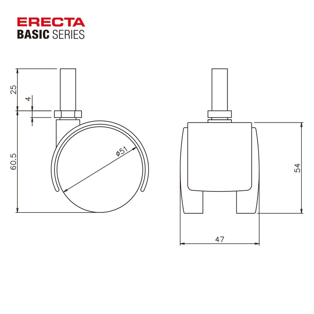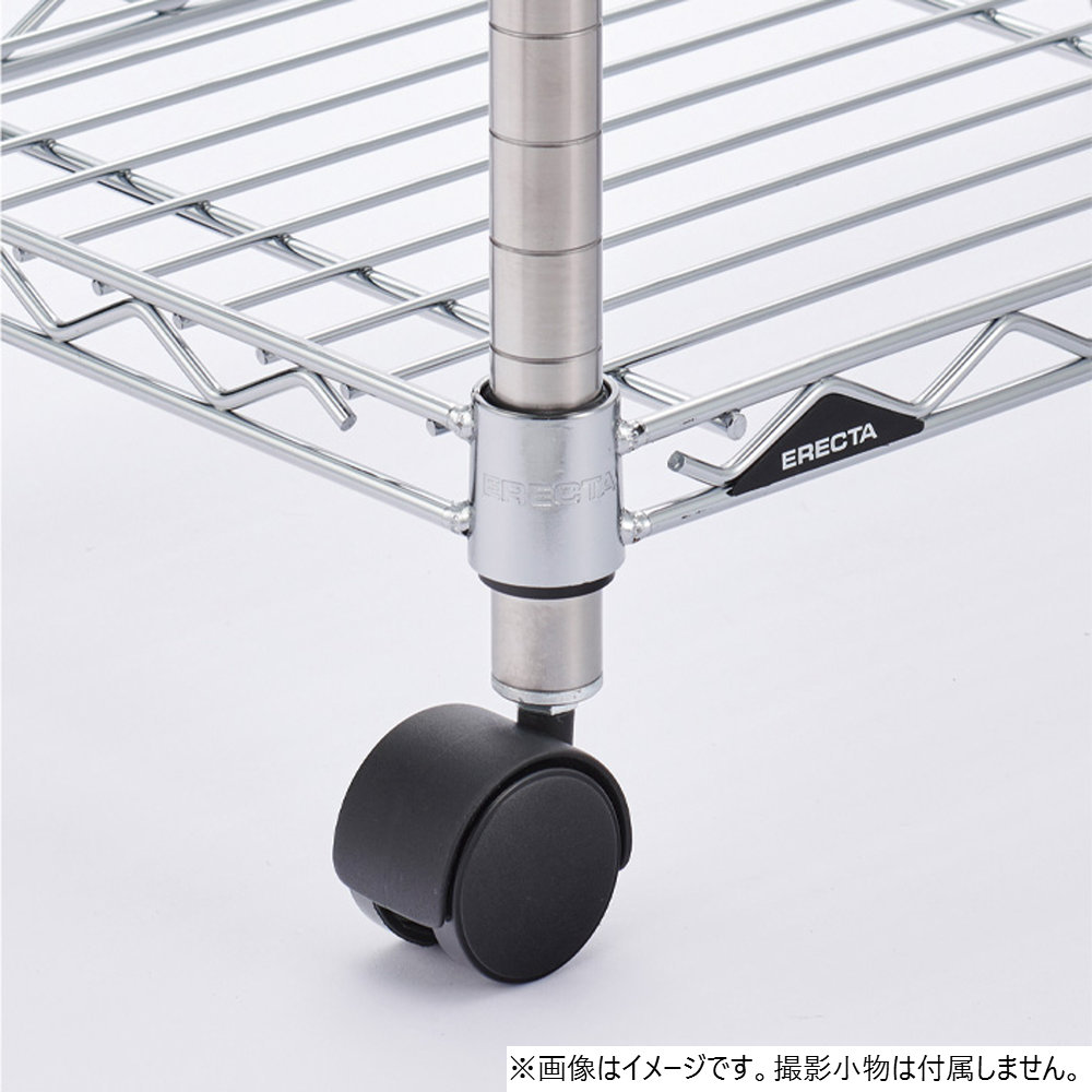 小型でシンプルなデザイン、取り付け簡単。ベーシックで使いやすいキャスター。ポール下部のアジャストボルトを外し、ねじ込むだけで取り付けられます。【仕様】総耐荷重:4個使用時/140kg(静止時)、70kg(可動時)●キャスター寸法:直径50mm・全高64mm・取り付け高さ41mm●キャスターを使用した場合の最大外寸:間口・奥行寸法に60mmを足した寸法になります。●付属品: 平ワッシャー、スプリングワッシャー、専用スパナ●互換性:スーパーシリーズ、ファーストシリーズ等、他のシリーズとの互換性はありません。