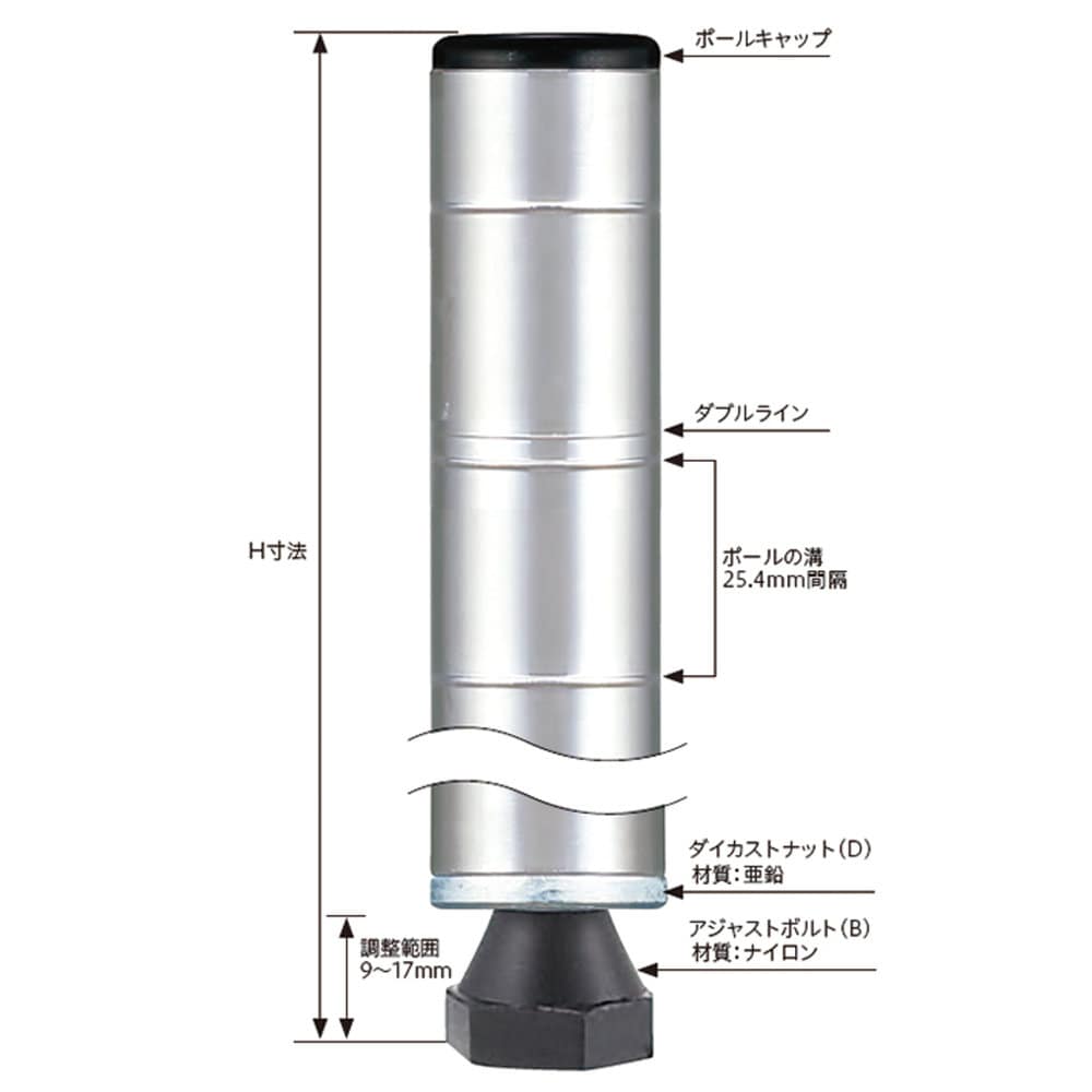 錆びに強く、キズがつきにくいポール。サビやキズに強いステンレス製:SUS430ステンレスを採用。エレクター甲府工場で製造され、組み立て時の精度の高さはスーパーシリーズに引けを取りません。ポストには組み立て時の目安として、8ピッチごとにダブルラインが付けられています。ホワイト・ブラックもタフな仕上げ:スチールにエポキシコーティング仕上げ(粉体塗装)を施し、確かな耐錆性を持ち合わせながら、マット仕上げに。ホワイトポールはキャップもホワイト色、ブラックポールはキャップをブラックに、見た目の統一感を演出。【仕様】外寸法:直径25.4mm●棚板の調整範囲/25.4mmごとに調整可能●機能/アジャスター機能(調整範囲:最大10mm)●互換性:スーパーシリーズ等、他のシリーズとの互換性はありません。●単位/1セット(2本入)