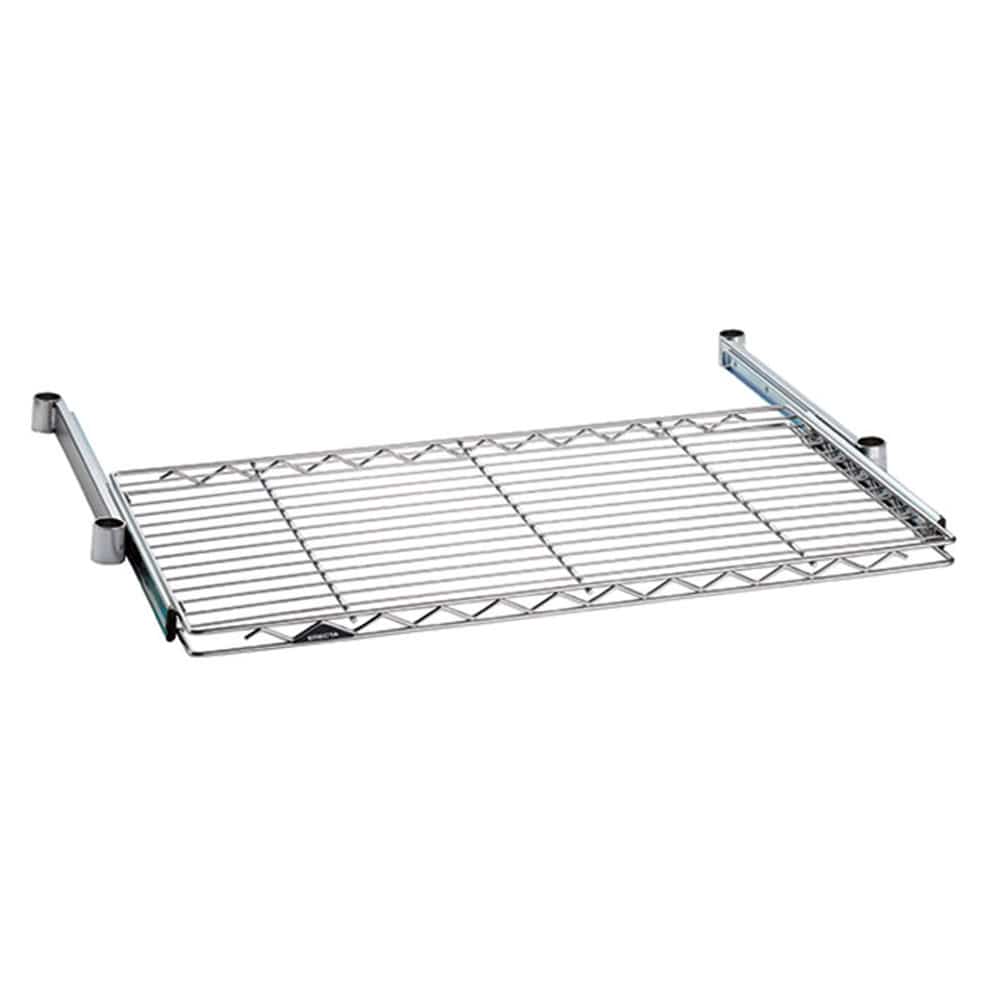手前に250mm引き出せるスライド式シェルフ。棚部だけを反転してもご使用になれます。(ワイヤー部間口外寸は最大外寸-96mmで計算してください。)(注)スライディングシェルフのみで棚を組むことはできません。上下にワイヤーシェルフや三方クロスバー等、4コーナーで定された棚板が2枚以上必要です。【仕様】耐荷重:20kg/棚1段 垂直荷重(等分布)●互換性:同一サイズのユニット内で、下記の棚板との併用が可能です。・ベーシックシリーズワイヤーシェルフ・ベーシックシリーズ ウッドシェルフ・ベーシックシリーズワイヤーシェルフ・ベーシックシリーズ スライディングシェルフ/ 3 方クロスバー/アクリル板・ベーシックシリーズヴィンテージエディションスーパーシリーズ、ファーストシリーズ等、他のシリーズとの互換性はありません。