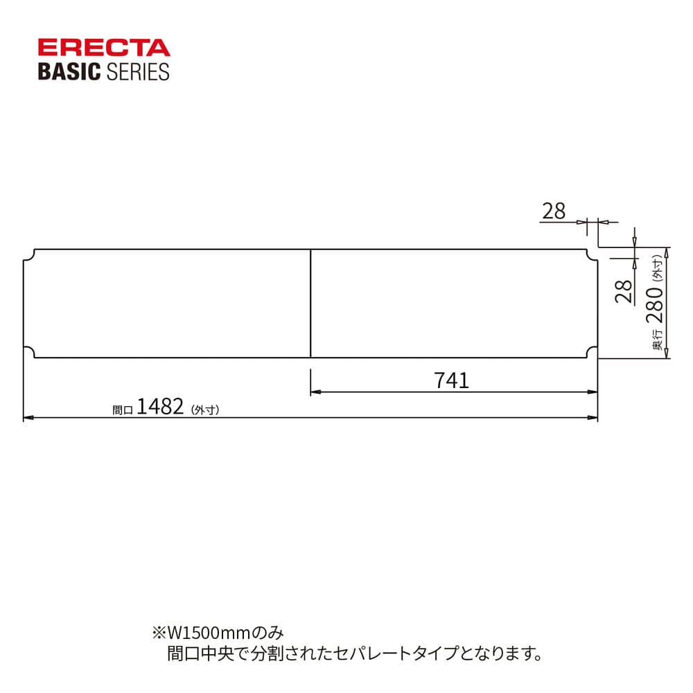 ※アクリル板は必ずワイヤーシェルフの上に載せてご使用ください。その場合、耐荷重(135kg/棚1段)は変わりません。※ディバイダーとの併用はできません。※ゴム・樹脂製品を載せて長期ご使用になる場合は、変色することがあります。※W1500mm のみ間口中央で分割された2 枚入りとなります。