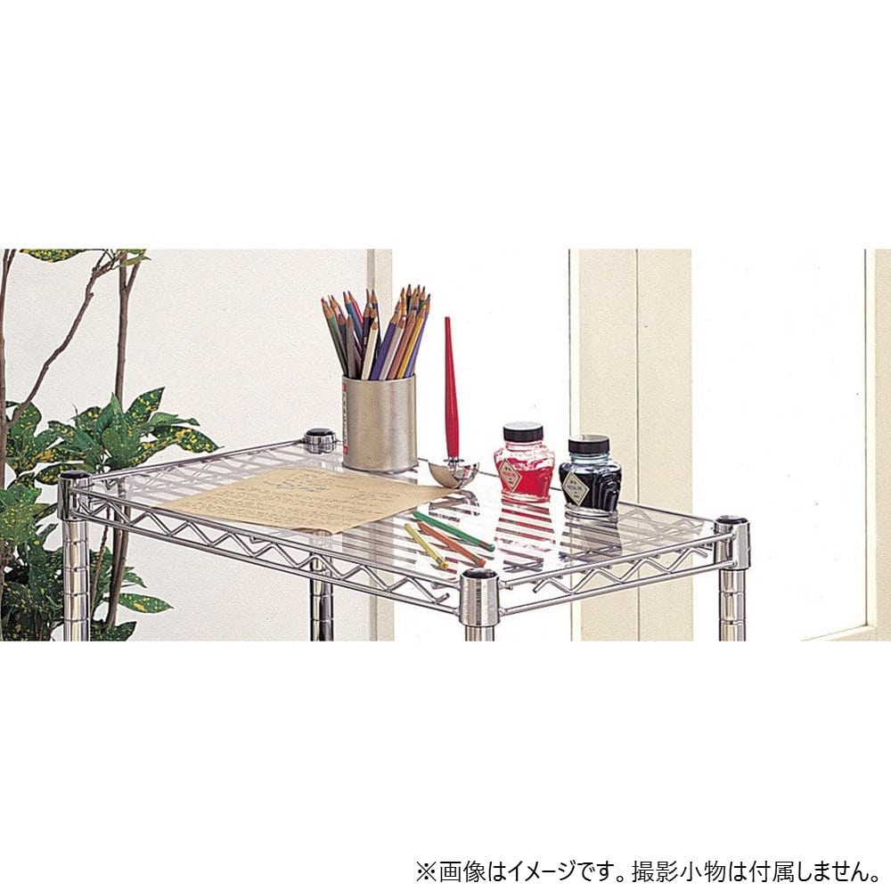 ※アクリル板は必ずワイヤーシェルフの上に載せてご使用ください。その場合、耐荷重(135kg/棚1段)は変わりません。※ディバイダーとの併用はできません。※ゴム・樹脂製品を載せて長期ご使用になる場合は、変色することがあります。※W1500mm のみ間口中央で分割された2 枚入りとなります。