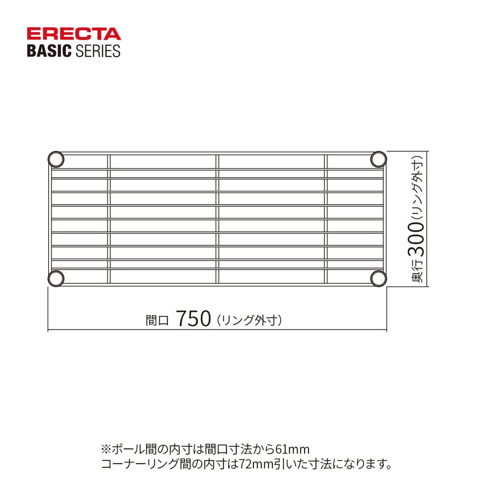 時代の変化にも揺るがないベーシックライン。高度な溶接技術により精度を高め、寸法安定性に優れます。 汎用性の高いパーツを用意し、万能型シェルフとして様々な用途に対応。棚1段あたり135kgの耐荷重。線材の切断面に面取り加工を施し、安全性に配慮。 間口1500mm、奥行450mm、600mmのワイヤーシェルフには補強用スネークが入ります。サビに強い仕上げ。クロームにはクリアコーティング仕上げを、ブラック・ホワイトにはエポキシコーティング仕上げ(粉体塗装)を施しているため、サビに強く衛生的です。【仕様】耐荷重:135kg/棚1段 垂直荷重(等分布)●互換性:同一サイズのユニット内で、下記の棚板との併用が可能です。・ベーシックシリーズ ウッドシェルフ・ベーシックシリーズ スライディングシェルフ/ 3 方クロスバー/アクリル板・ベーシックシリーズヴィンテージエディションスーパーシリーズ、ファーストシリーズ等、他のシリーズとの互換性はありません。
