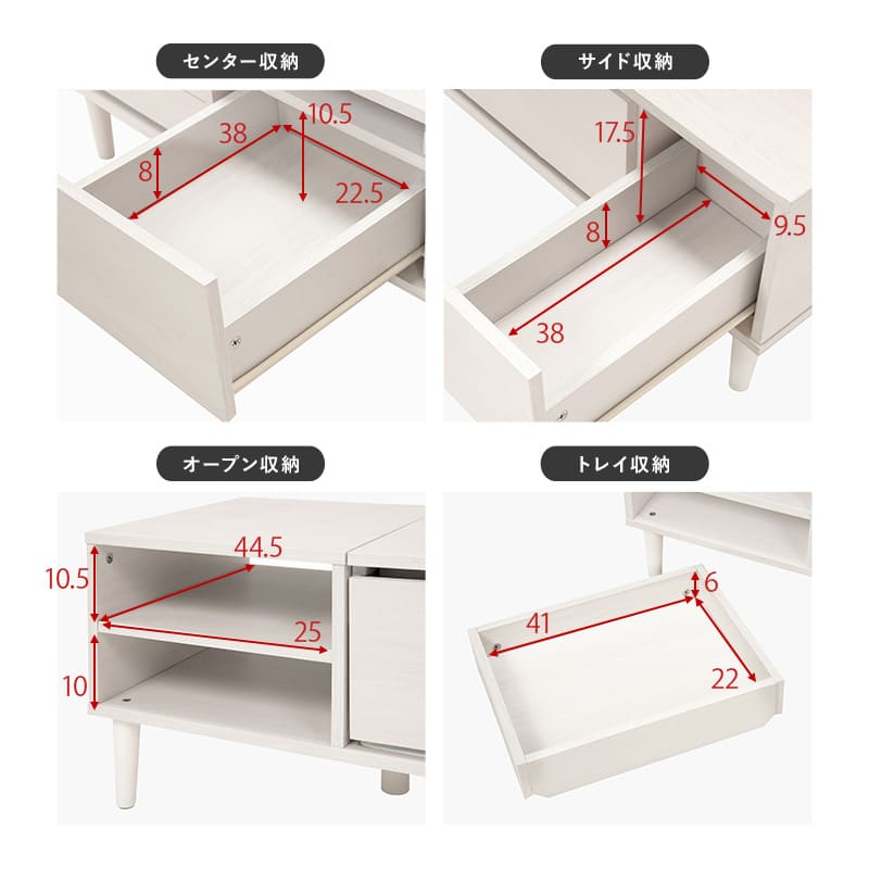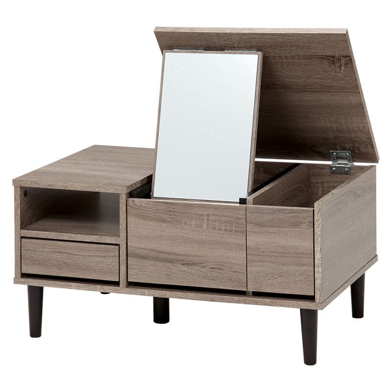 天板を開ければドレッサーとして使えるセンターテーブル。幅75cm