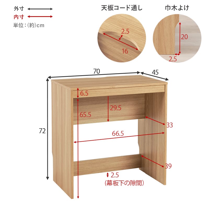 リビングのちょっとしたスペースにも置きやすい奥行スリムなシンプルデスク。コンパクトな幅70cmタイプ