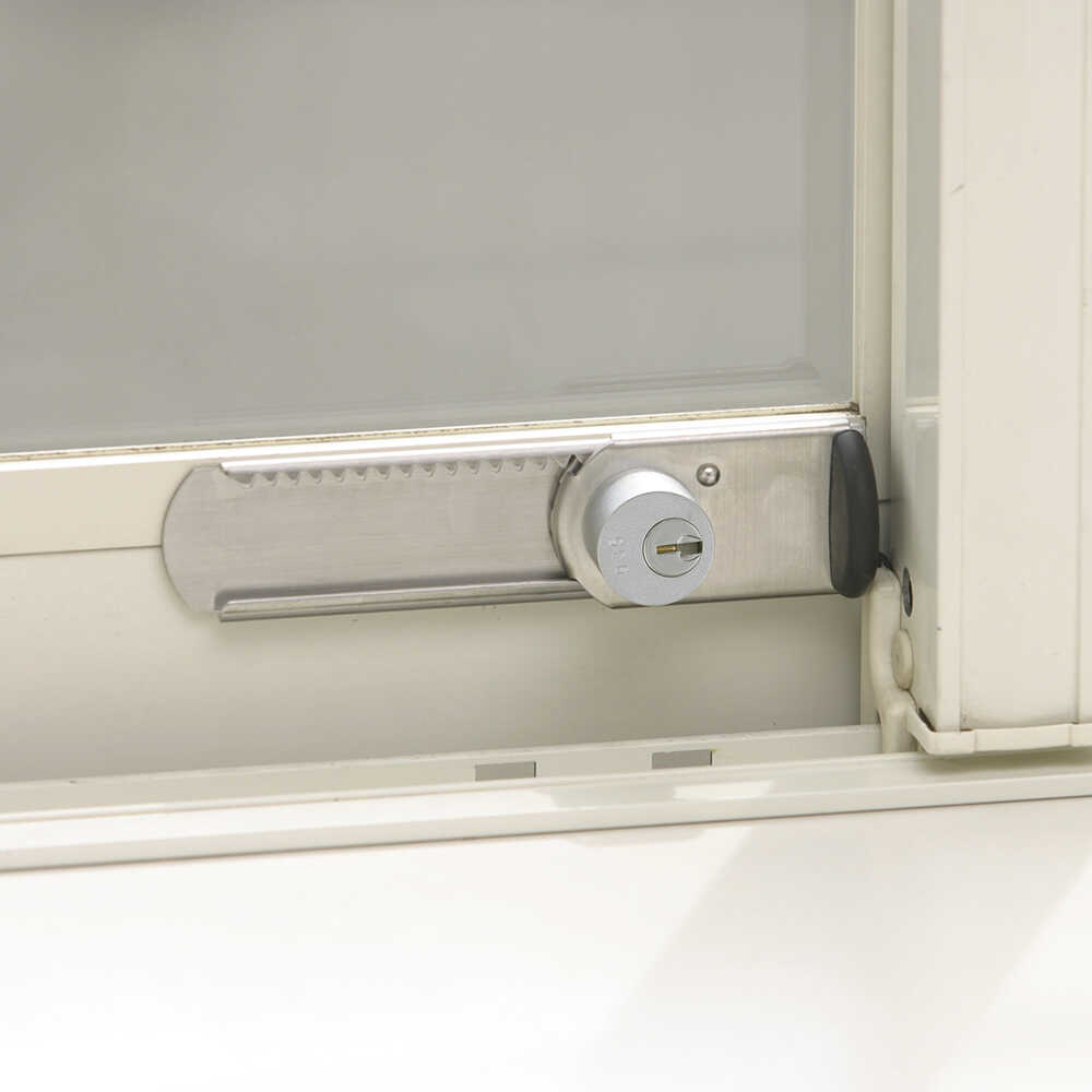 ●強力両面テープで取り付けできる鍵付窓用補助錠です。●強力両面テープで圧着して取り付けるので、窓枠締め付け型の防犯用品のようにサッシや窓枠にゆがみや変形をきたすことはありません。●レールの長さが約10cmほどありますので、完全にロックするだけでなく、ロックしながらチョットの窓開けをすることもできます。●カギ式なので、万一、侵入者の手が「はいれーぬ」にのびたとしても、ロックを解除される心配はありません。●色:シルバー●幅(mm):119●奥行(mm):22●高さ(mm):30.5●本体寸法(mm)縦×横×奥行:30.5×119×22●シルバー●鍵付 質量108g