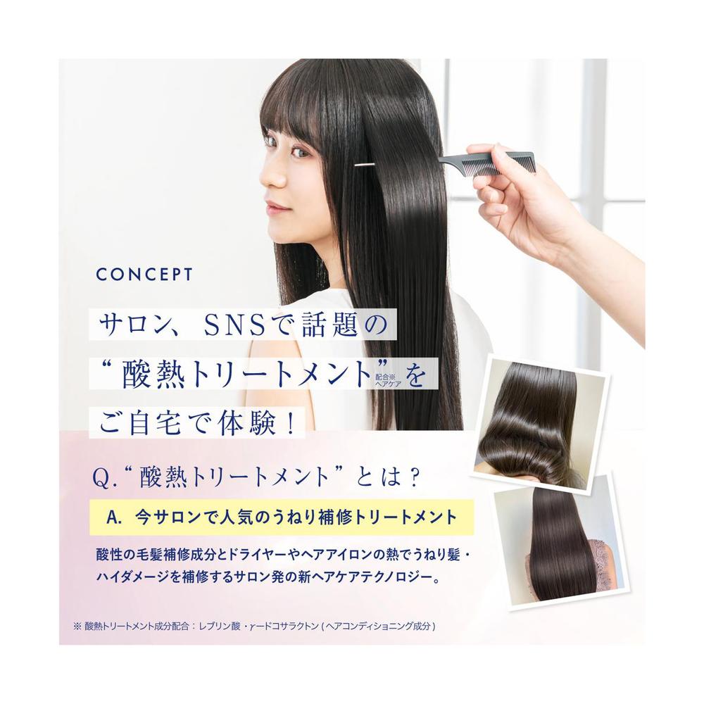 水、ステアリルアルコール、グリセリン、ジメチコン、ベヘントリモニウムクロリド、トリ(カプリル酸/カプリン酸)グリセリル、レブリン酸、加水分解ケラチン(カシミヤヤギ)、加水分解シルク、シルク、加水分解ケラチン、γードコサラクトン、オプンティアストレプタカンサエキス、ハベルレアロドペンシス葉エキス、ヘマチン、セラミド2、セラミド5、セラミド3、セラミド6II、セラミド1、ビート根エキス、酵母エキス、マンダリンオレンジ果皮エキス、オリーブ葉エキス、メリッサ葉エキス、ワイルドタイムエキス、コレステロール、ヒドロキシエチルセルロース、ジステアリン酸ポリグリセリル-10、ダイマージリノール酸ダイマージリノレイル、パルミタミドプロピルトリモニウムクロリド、PG、BG、クオタニウム-33、イソプロパノール、PPG-3カプリリルエーテル、ジステアリルジモニウムクロリド、1,2-ヘキサンジオール、カプリリルグリコール、エタノール、フェノキシエタノール、香料