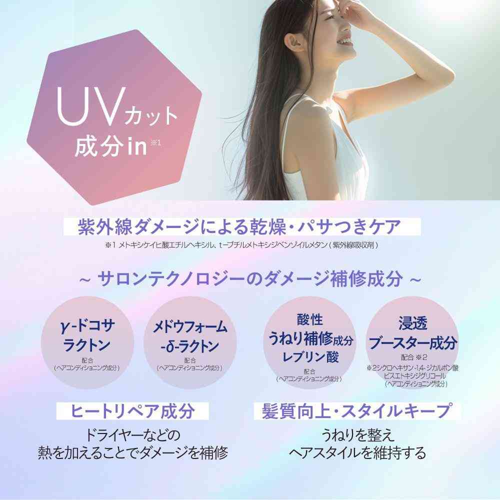【シャンプー】水、ラウロイルメチルアラニンNa、コカミドDEA、コカミドプロピルベタイン、ココイルグルタミン酸Na、加水分解ケラチン、加水分解コンキオリンタンパク、加水分解シルク、加水分解ローヤルゼリータンパク、アーモンドタンパク、ホエイ、γ-ドコサラクトン、メドウフォーム-δ-ラクトン、レブリン酸、セバシン酸ジエチル、アルガニアスピノサ核油、シア脂、ホホバ種子油、ガラクトミセス/シラカンバ樹液発酵液、加水分解コラーゲン、ユズ果実エキス、メトキシケイヒ酸エチルヘキシル、t-ブチルメトキシジベンゾイルメタン、グリセリン、トコフェロール、ジステアリン酸PEG-150、ポリクオタニウム-10、ココイルメチルタウリンNa、クエン酸、ポリクオタニウム-7、エチドロン酸、エチドロン酸4Na、BG、EDTA-2Na、シクロヘキサン-1,4-ジカルボン酸ビスエトキシジグリコール、メチルパラベン、フェノキシエタノール、香料 【トリートメント】水、ステアリルアルコール、グリセリン、ベヘントリモニウムクロリド、ジメチコン、ハチミツ、加水分解ケラチン、加水分解コンキオリンタンパク、加水分解シルク、加水分解ローヤルゼリータンパク、アーモンドタンパク、ホエイ、γ-ドコサラクトン、メドウフォーム-δ-ラクトン、レブリン酸、セバシン酸ジエチル、アルガニアスピノサ核油、シア脂、ホホバ種子油、ユズ果実エキス、ガラクトミセス/シラカンバ樹液発酵液、加水分解コラーゲン、メトキシケイヒ酸エチルヘキシル、t-ブチルメトキシジベンゾイルメタン、アルギニン、グルタミン酸、アミノプロピルジメチコン、イソプロパノール、ヒドロキシエチルセルロース、アモジメチコン、ジココジモニウムクロリド、ステアリン酸PEG-55、シクロペンタシロキサン、ステアルトリモニウムクロリド、BG、シクロヘキサン-1,4-ジカルボン酸ビスエトキシジグリコール、トコフェロール、フェノキシエタノール、香料