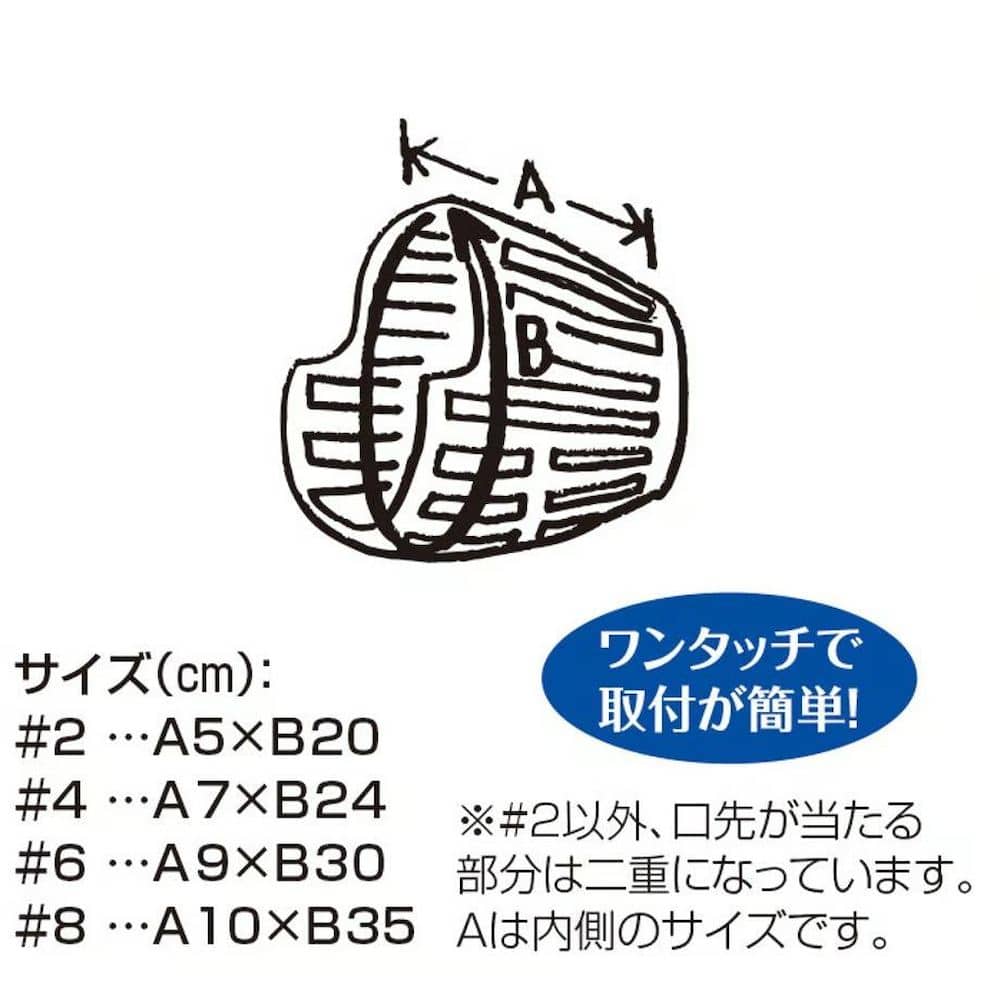 サイズ:#2:5cm×20cm、#4:7cm×24cm、#6:9cm×30cm、#8:10cm×35cm