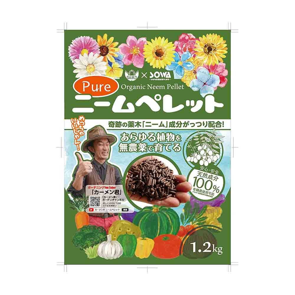 ニームの力であらゆる植物を無農薬で育てる 【特徴】 ・肥料効果と土壌改良効果、根張りを良くして病害虫に強くなる効果が規定でき、無農薬でも育てやすい。 ・ニームの木の実からとれる絞り粕をペレット状にした天然成分100%の有機質肥料です。