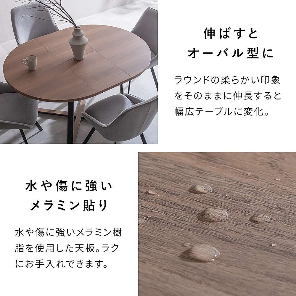 100cmのラウンド天板から135cmのオーバル天板に変えられる伸長式ダイニングテーブル『Roano(ロアーノ) 』。天板下に収納された折りたたみ式天板をセットするだけでラクラク伸縮。お子様の成長や、来客に応じて多目的にお使いいただけます。天板はナチュラルとブラウンの2カラーをご用意。ダイニングの雰囲気やお好みでお選びいただけます。製品重量:35.1kg 組立式(約20分)