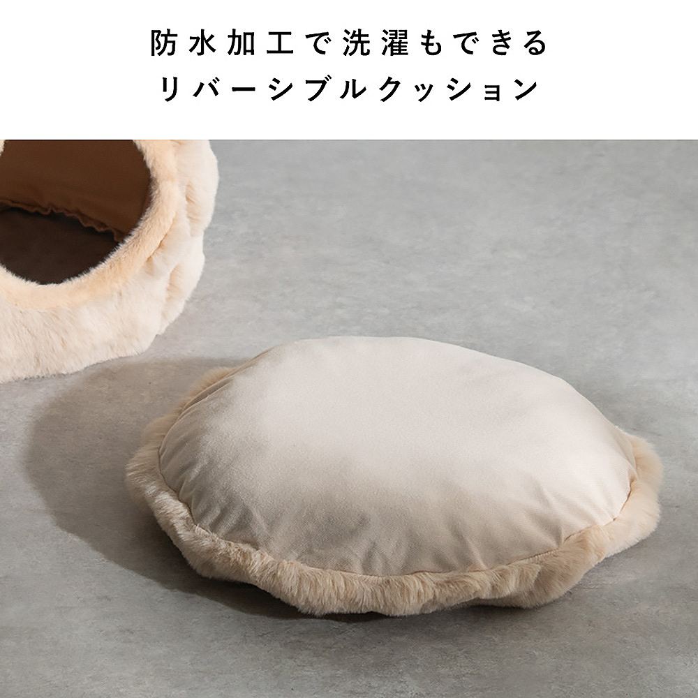 ふわとろなマイクロファイバー生地の可愛いドーム型ペットベッド『Foure(フール)』。狭くて落ち着くドームの中にはリバーシブルクッション付き。猫はもちろん小型犬もお使いいただけます。また、上部を潰せばベッド型にもなります。カラーはホワイト、ピンク、ベージュ、グレーの4種類。お部屋の雰囲気やお好みでお選びいただけます。製品重量:0.8kg 完成品