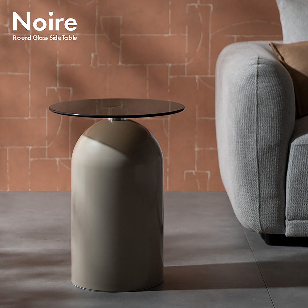 映り込みが美しいガラス天板とドーム型の円筒ベースが目を惹くサイドテーブル『Noire(ノワレ)』。コンパクトで安定感のあるデザインと強度の高い素材で、ソファやベッドサイドに最適。使いやすくお部屋の雰囲気も高めてくれます。製品重量:5kg 組立式(約5分)