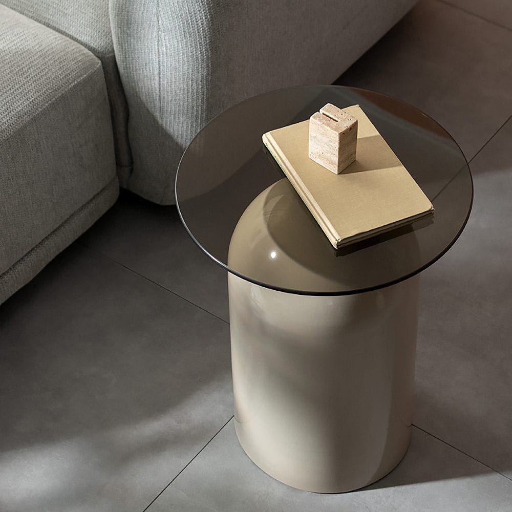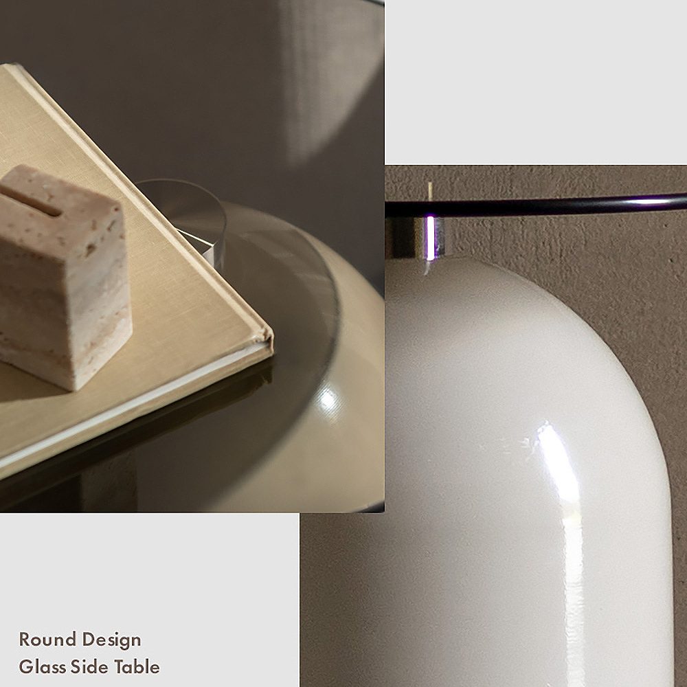 サイドテーブル ガラス 丸型 モダン おしゃれ ベッドサイドテーブル リビングテーブル ソファ サイド テーブル ベッドサイド 円形 小さめ シンプル スタイリッシュ ナイトテーブル リビング ベージュ SignatureStudio シグスタ Noire[ノワレ]